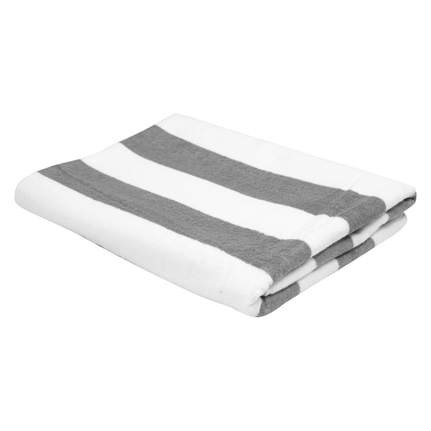 Conteúdo da embalagem: 1 Toalha de Piscina Ibiza com Listras Cinza, no tamanho 86x160cm.